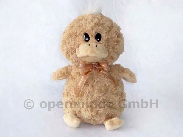 Ente ca. 25 cm, mit transparenter Schleife und weißem Haarschnitt