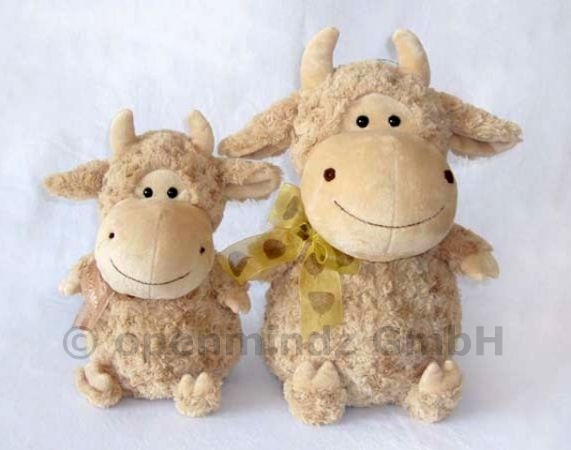 Kuh mit Hörnern und transparenter Schleife, ca. 25 cm und ca. 30 cm