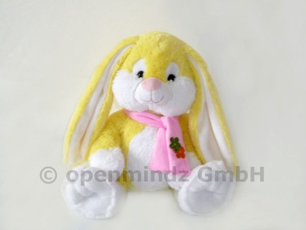 Mit Plüsch Hase Helen ist Auffallen ein Kinderspiel. Ihr gelbes Plüschfell und der pinkfarbene Schal machen sie mit individueller Logo Anbringung zu einem Plüschwerbeartikel mit Potential.