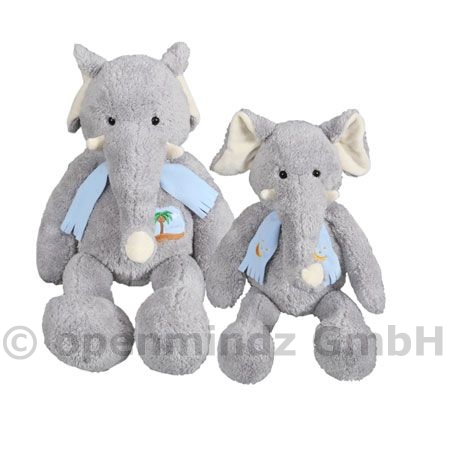 Elefantenset 30 cm und 40 cm grau, mit Stickerei und hellblauem Schal