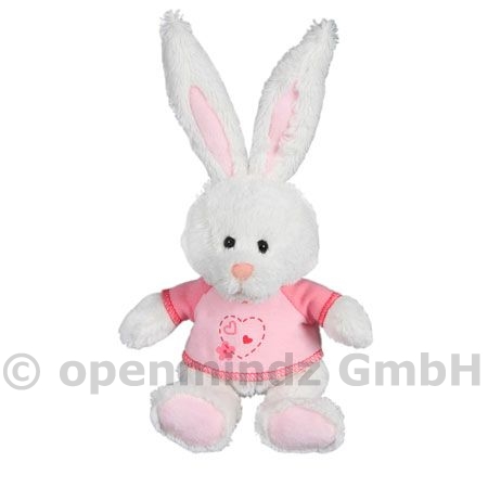 Zum knuddeln süß! Plüsch Hase Lola lässt mit ihrem rosa Shirt jedes Herz höher schlagen. Mit individuellem Anbringen Ihres Logos wird Lola ein Plüsch Werbemittel mit Effekt!